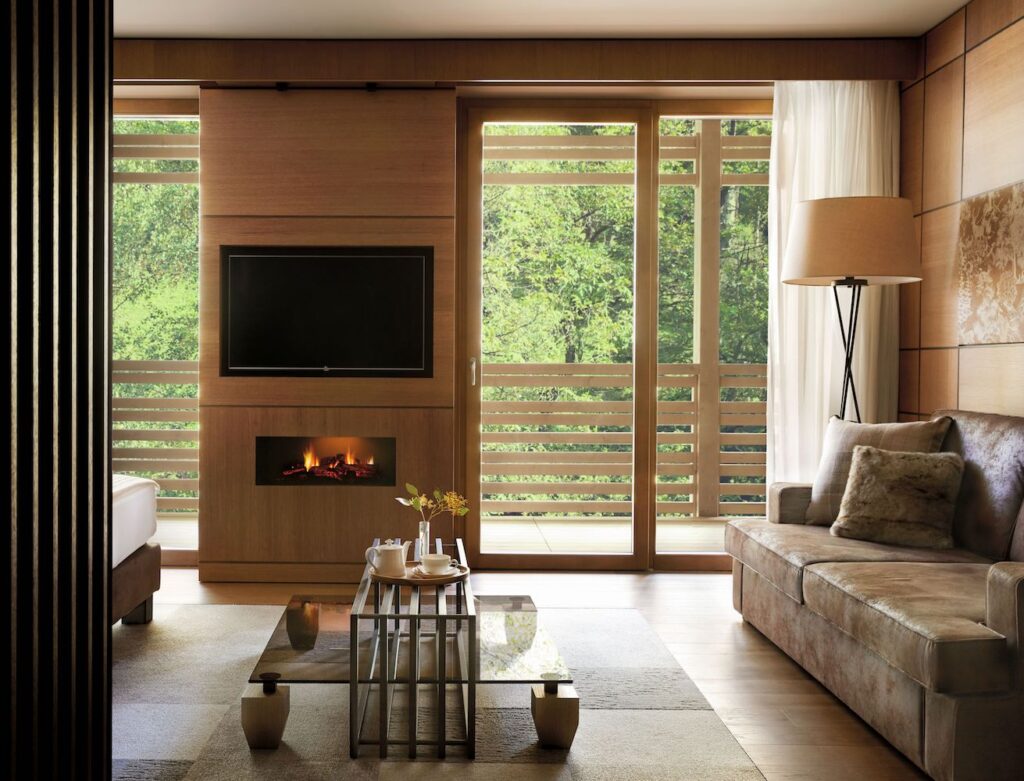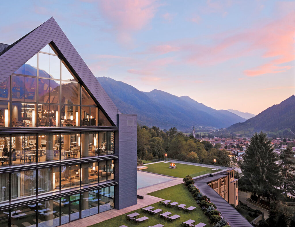 Schon die Anreise in die Bergwelt des Trentino entschleunigt. Inmitten unberührter Landschaft erhebt sich das Lefay Resort & SPA Dolomiti oberhalb von Pinzolo, ruhig eingebettet zwischen Wäldern und Gipfeln. Das Fünf-Sterne-Resort folgt einer klaren architektonischen Linie, in der alpine Tradition und zeitgenössisches Design eine selbstverständliche Einheit bilden. Die 89 Suiten, ein exklusives Penthouse sowie 21 Residenzen orientieren sich in Materialität und Formensprache an ihrer Umgebung. Kastanien- und Eichenholz, warme Textilien und großzügige Glasflächen öffnen den Blick auf das Tal und die Dolomiten. Im Winter liegt das Skigebiet Madonna di Campiglio mit seinen weitläufigen Pisten in unmittelbarer Nähe, im Sommer prägen Wanderungen, E-Bike-Touren und Golf das alpine Leben.